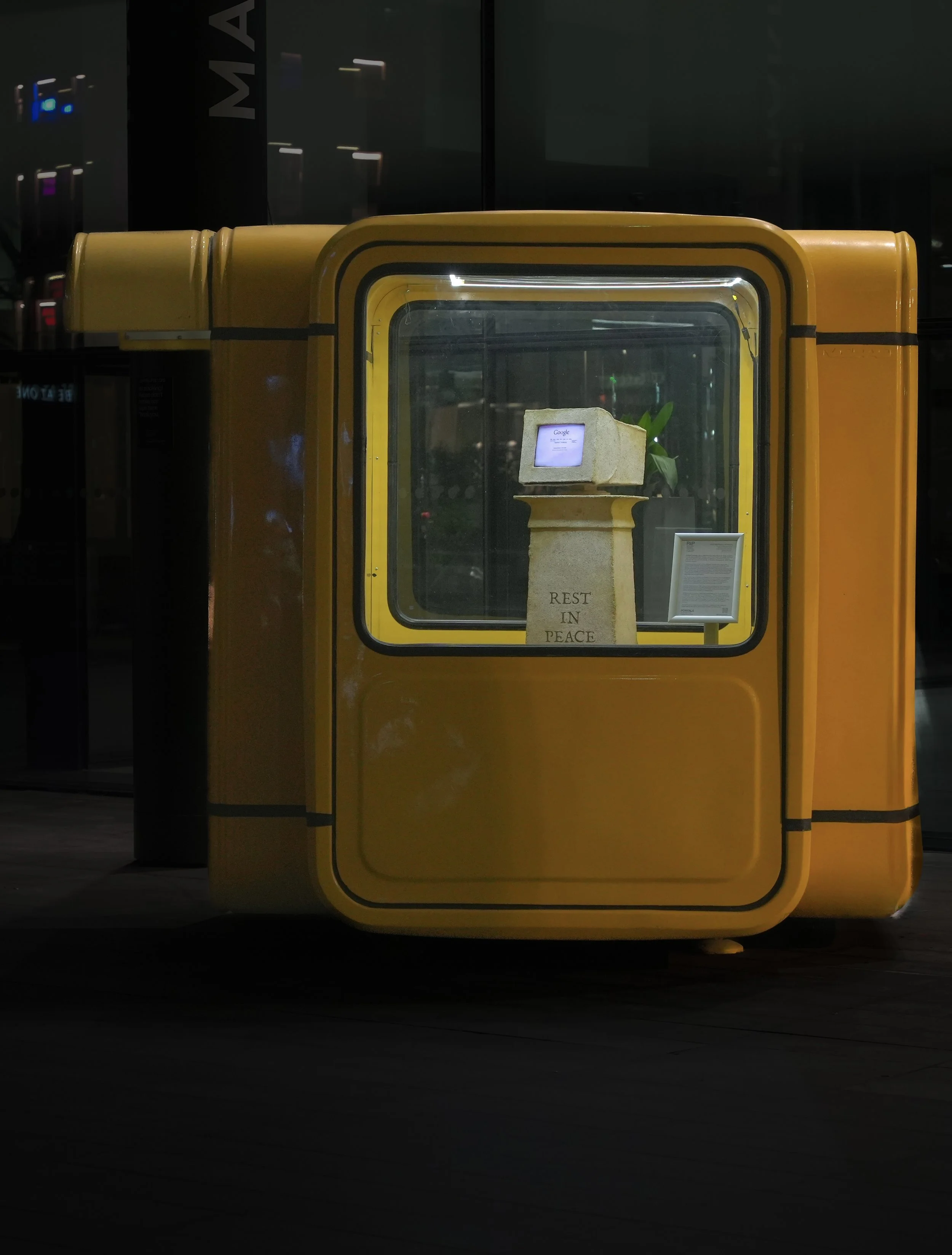 PORTALS presents ’RIP my heterosexuality which died at the family computer’, by Judy Maxwell-McNicol, installed within the K67 kiosk in Spitalfields Market as part of the platform’s inaugural public art programme. Running until 16 March 2026 and framed as a humorous memorial, the work marks the passing of the artist’s heterosexuality, which, died at the family computer.